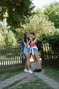 Twee beste vriendinnen zijn elkaars lichaam aan het ontdekken